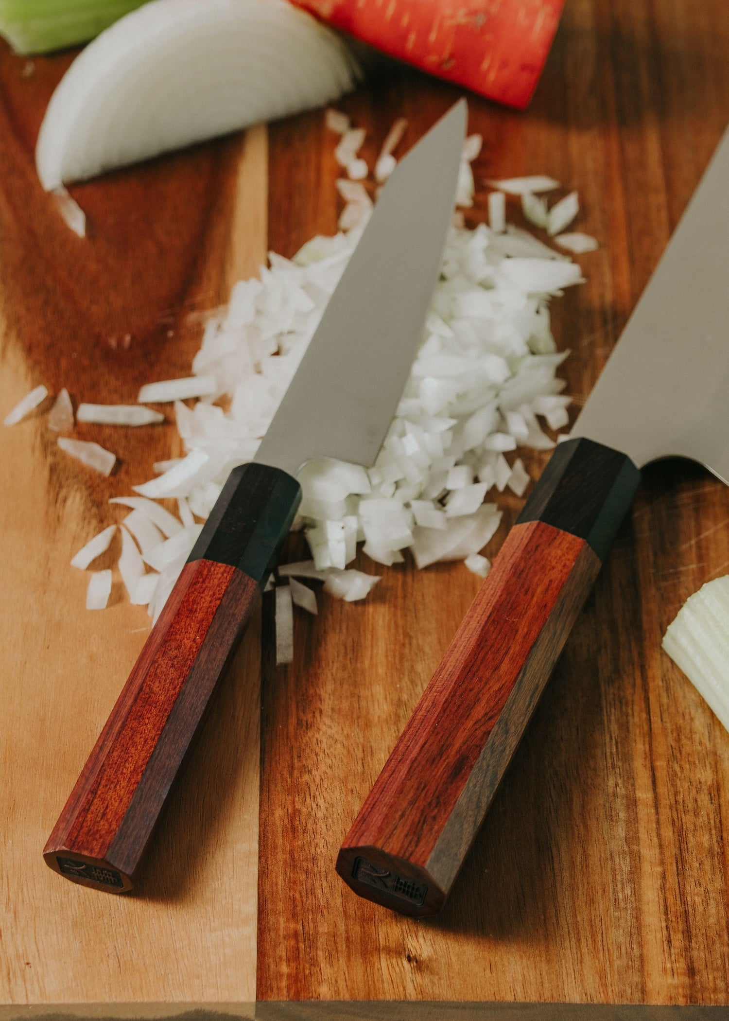 Also referred to as a utility knife, it shares similarities with the Gyuto but particularly shines in off-the-cutting-board duties. This knife epitomizes precision, excelling in delicate tasks such as peeling, trimming, and intricate detailing.